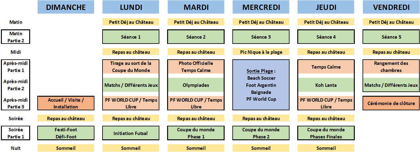 Tu es passionné de football et tu veux progresser tout en t'amusant ? Ce séjour est fait pour toi ! Viens t'entraîner, améliorer ta technique et participer à des compétitions dans une ambiance conviviale et sportive. Encadré par des éducateurs diplômés, tu vivras une expérience unique, digne des plus grands clubs ! ?